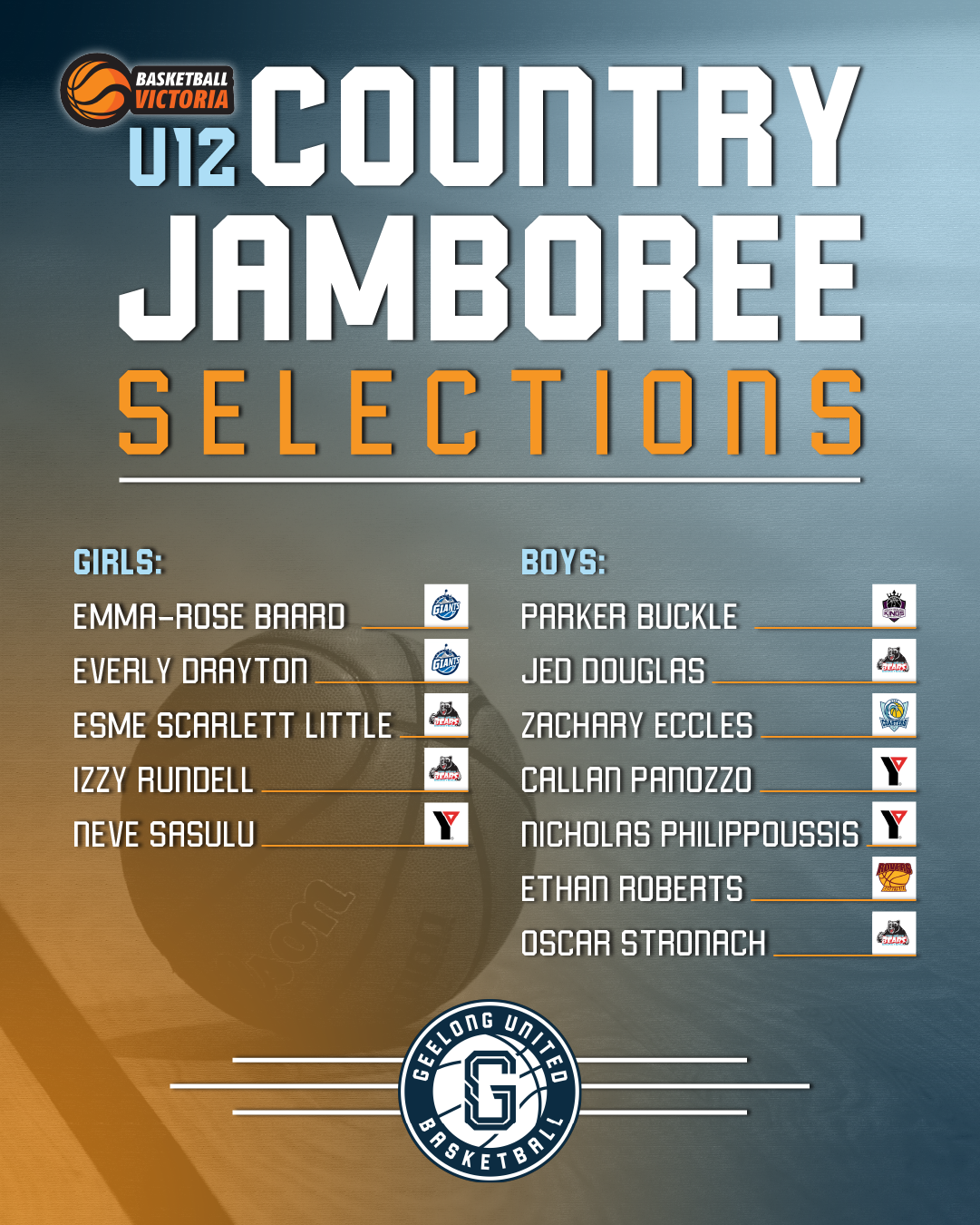 Congratulations to our GUB VJBL U12 Pathways Players selected for Under-12 Country Jamboree, set to take place in Echuca from 20 – 23 September.